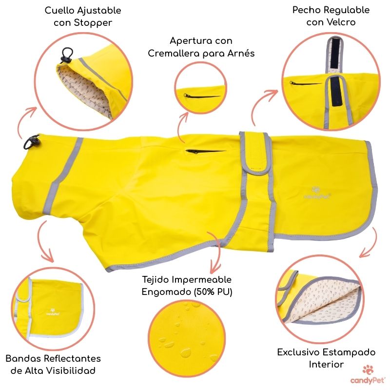 Style and protection in one: The candyPet waterproof raincoat combines functionality, comfort and design so your greyhound is always ready —and stylish— for any adventure in the rain.